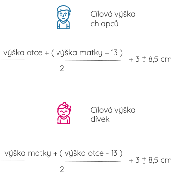 Výšku člověka určuje především jeho růstový dědičný vklad (potenciál) a jeho pohlaví. Průměrný výškový rozdíl mezi muži a ženami v dospělosti je 13 cm. Na základě znalostí o dědičnosti výšky těla lze s 95% pravděpodobností stanovit pásmo cílové výšky dítěte. Přesnou předpověď (predikci) dospělé výšky lze spolehlivě určit jen na specializovaných pediatrických pracovištích, podle tzv. kostního věku.